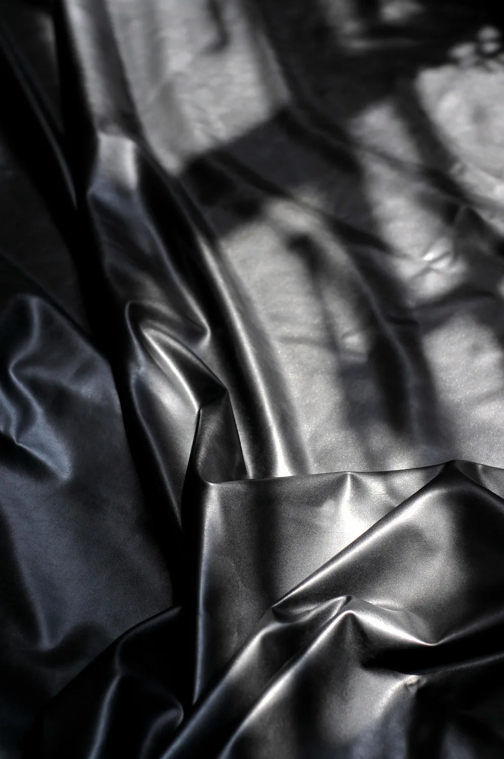 Brilliant Black Synthetic Pu leather Fabric Stretch Knitted Fabric Super Black