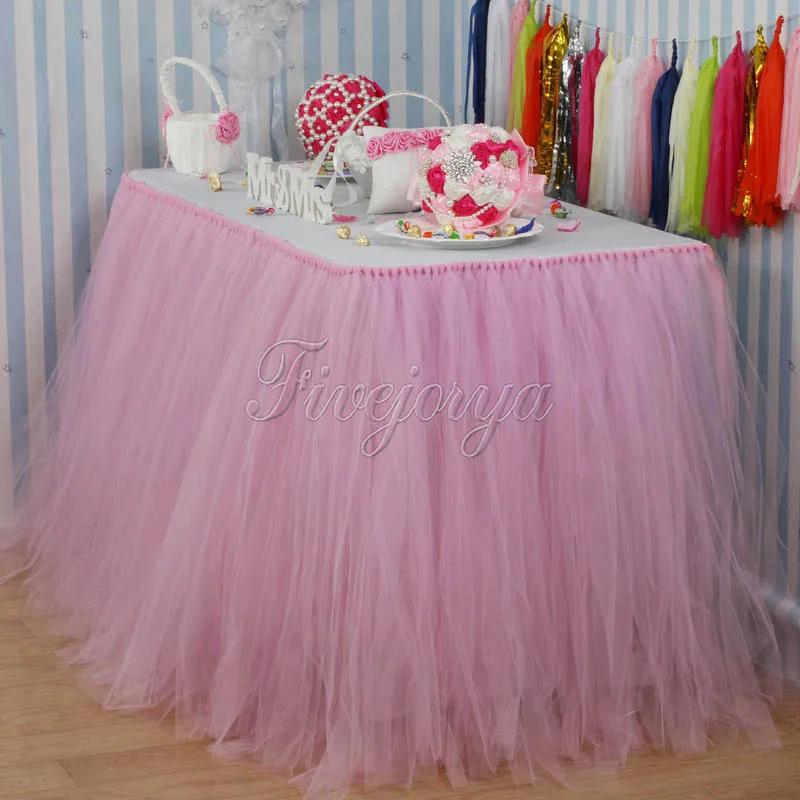 Pink Tulle Tutu Table Skirt Home Textile Wedding Table Skirts 100cm x 80cm for Event Party Baby Sho
