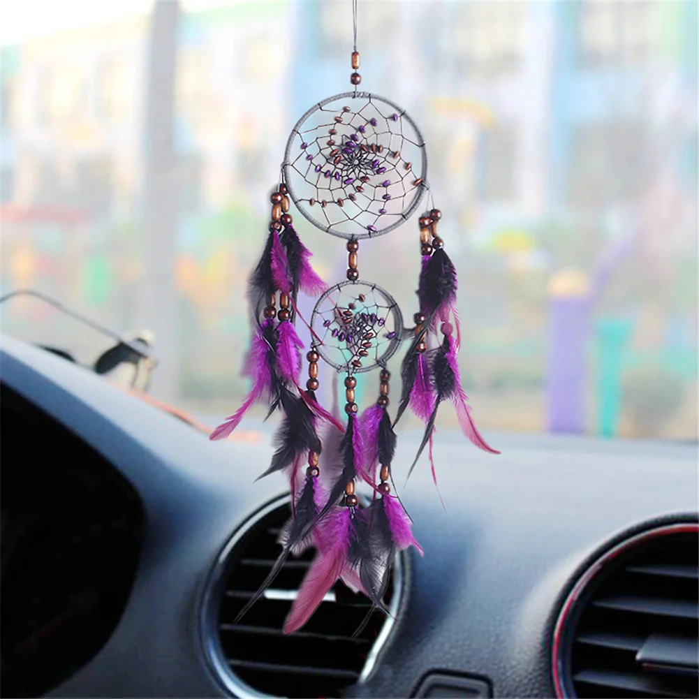 Handmade Dream Catcher Pendant Mini Car Ornaments Innovative Gifts Wind Chimes Dreamcatcher Natural Feathers Wall Hanging Decor